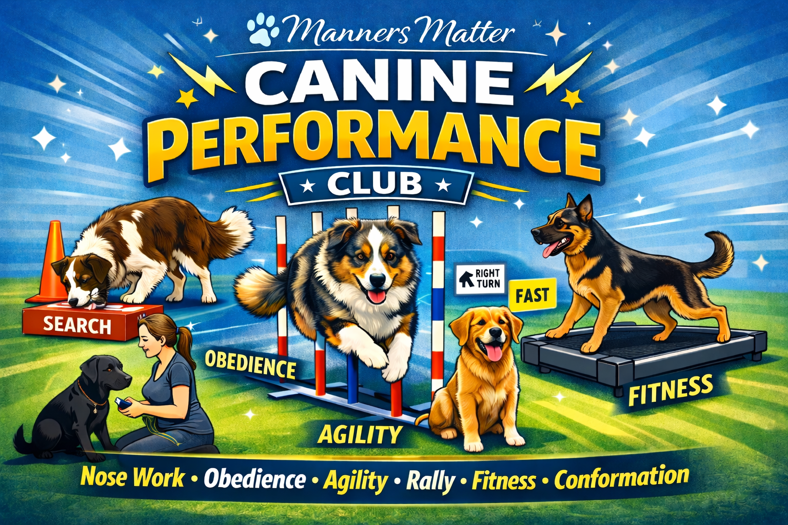 Manners Matter is an open enrollment class that covers; polite greetings (not jumping up), leash manner basics, stay, coming when called, working around distractions, sit and down. A great class for dogs 5 months and older.